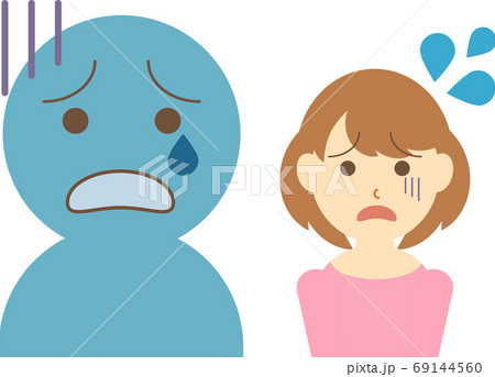 他人の視線に怯える女性のイラスト