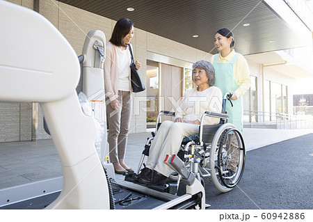 女性 ビジネス 介護士 高齢者 シニア 車椅子 福祉車両 介護車両 車椅子車両 リフト 昇降装置