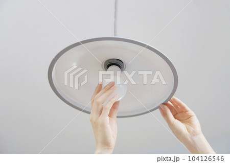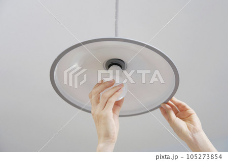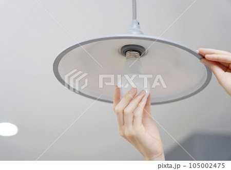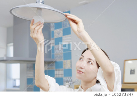 自宅の電球を交換する女性 顔無し