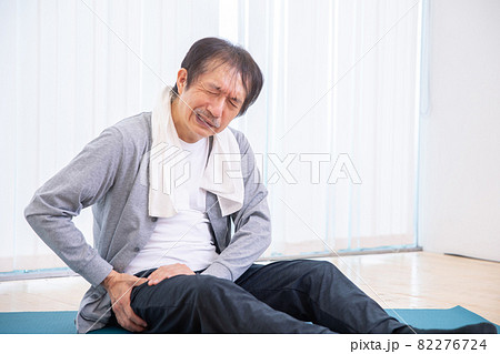トレーニング中に痛がる中高年男性(太もも・股関節)