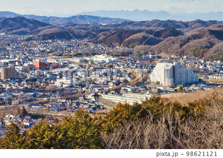 仙元山見晴らしの丘公園の展望台から望む小川町の景色