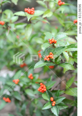 赤い実をつけたセンリョウ