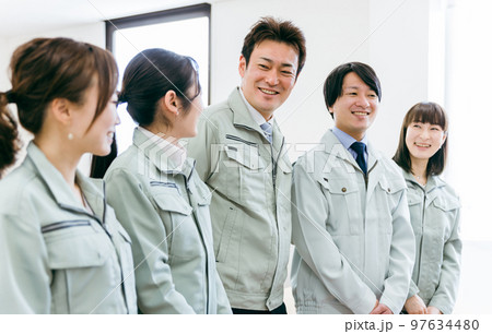 工場・工務店などの中小企業で働く作業着を着た従業員・スタッフの横顔(ビジネスマン・ビジネスウーマン)