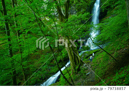緑に包まれた大除沢不動滝