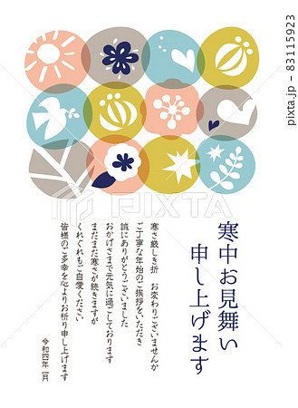 寒中お見舞いハガキテンプレート/版画調/植物モチーフ/挨拶文