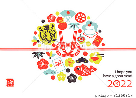 シンプルでかわいい年賀状 2022年度寅年年賀状イラスト素材