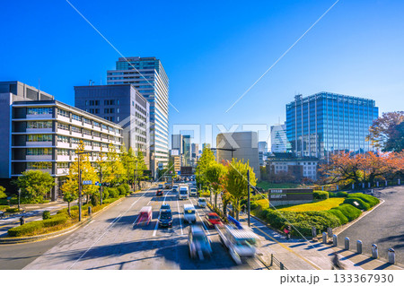 日本の東京都市景観出勤風景。九段下駅前。奥は田安門方向。あの悲劇を忘れてはならない…=11月21日
