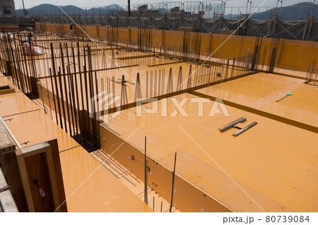 建設現場の鉄筋工事 コンクリート打設