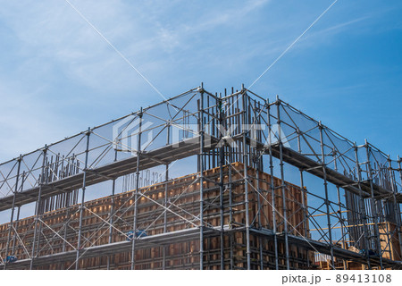 仮設工事 青空と仮設足場