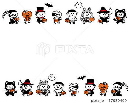 ハロウィンの仮装行列フレーム・ラインセット