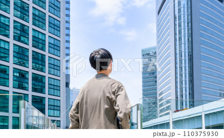 日本の東京都市景観 高層ビルを見上げるオフィス街の風景