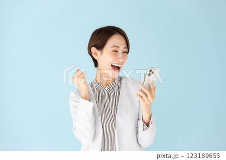 女性 ビジネス ポートレート スマホ 驚く 笑顔