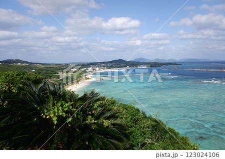 沖縄県 伊是名島 伊是名城跡より仲田港を望む