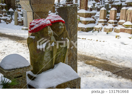 雪の中の仲良し地蔵 高野山奥の院参道 和歌山県伊都郡高野町