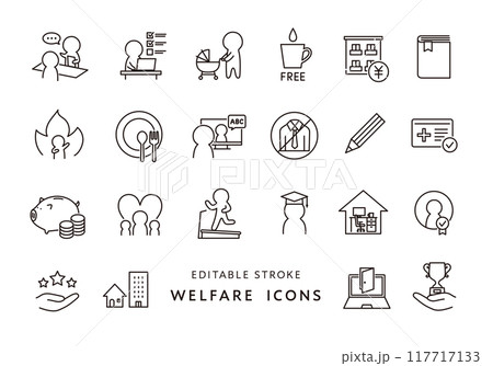 福利厚生にまつわるアイコンセット4(モノクロ)