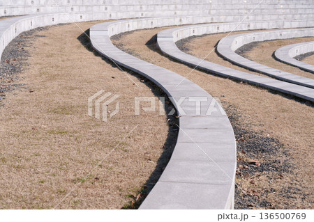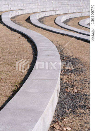 曲線が美しい屋外コンクリート階段の景観デザイン