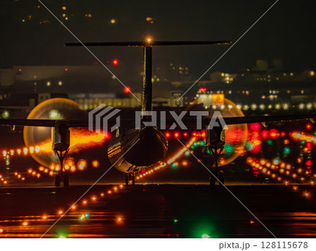 大阪空港(伊丹空港)の夜景 タキシング中の飛行機 大阪府豊中市
