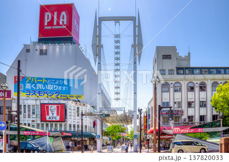 日本の横浜都市景観 関内駅すぐのイセザキ・モール(伊勢佐木町商店街)など望む=11月