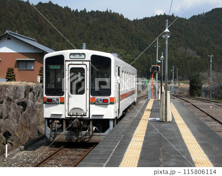 JR東海で名松線の終着駅伊勢奥津駅ホームに気動車が停車中