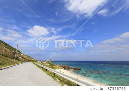 沖縄 伊平屋 島の風景(西側の海岸線)