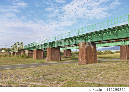 福岡県鞍手郡の遠賀川に架かる平成筑豊嘉麻川橋梁と車両