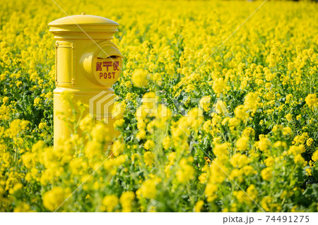 菜の花畑 幸せの黄色いポスト