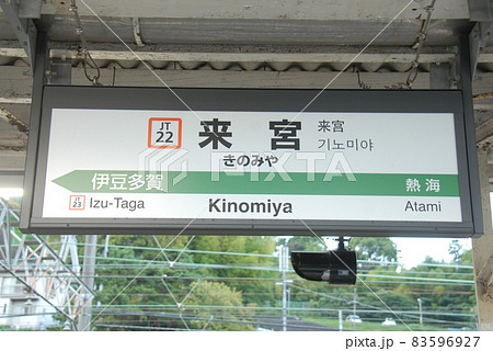 伊東線(上野東京ライン)来宮駅(JT22)の駅名表示板(静岡県熱海市)
