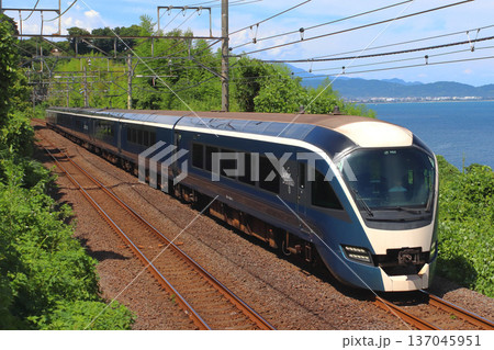 夏の海岸線を行く特急サフィール踊り子号(東京⇔伊豆急下田)