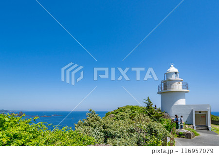 石廊埼灯台 伊豆半島の最南端 白亜の塔形 絶景岬 壮大な太平洋のパノラマ 真っ青な海に白く輝く灯台