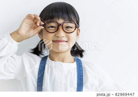 めがね (メガネ 眼鏡 子供 乳幼児 上半身 コピースペース ライフスタイル 日常 無背景 こども)