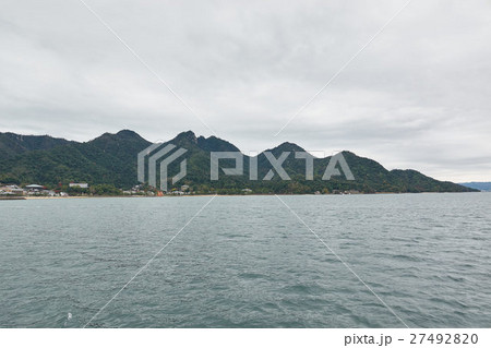 海上から観音様の寝姿に見える弥山全形を広角撮影、広島県