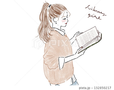 本を読むポニーテール女性