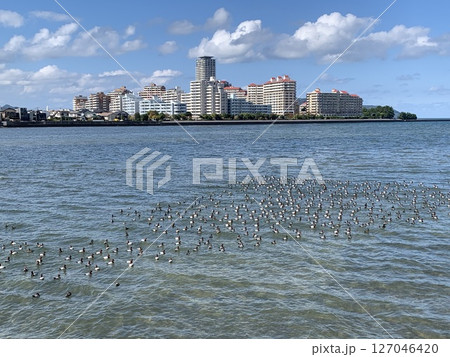河口で一休みする海鳥たち/福岡市・ももち浜