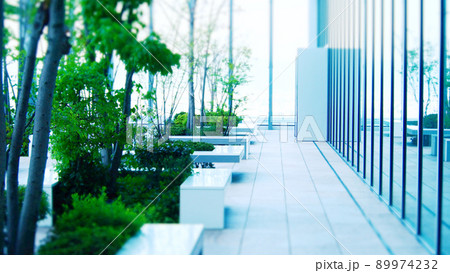 Modern minimal white hospital or clinic corridor and waiting room interior design with white chairs