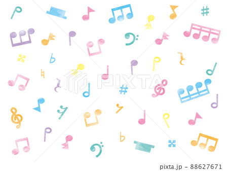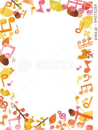 秋イメージの音符と5線符の手描き色鉛筆画のイラスト