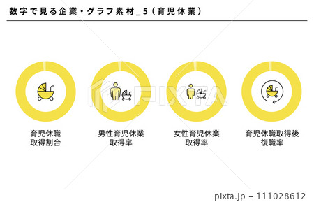 数字で見る企業・グラフ素材セット_5(育児休業)、ベクター