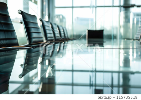 Blurred modern business office interior room use for background in business concept. Meeting room. Blur corporate business office and skyscraper building city view. Workspace design. Generative AI.