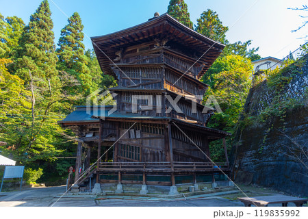 日本 福島県会津若松市の飯盛山の中腹に建つ会津さざえ堂の内部の螺旋階段