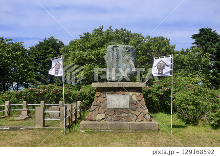 利尻島ペシ岬展望台からが夕日ヶ丘展望台、ポンモシリ島を望む