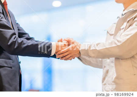 握手するビジネスマンとエンジニア 顔無し