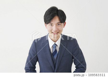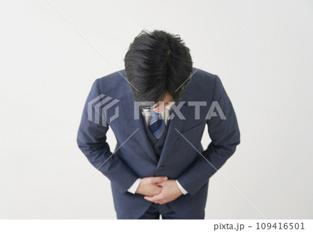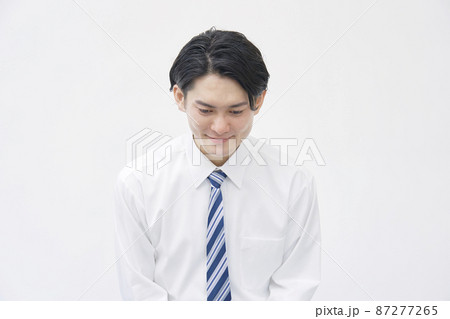お辞儀をする若いビジネスマン 白背景 カメラ目線