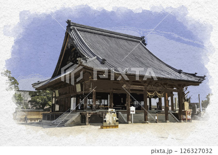 水彩画風 西大寺観音院 本堂 岡山県岡山市