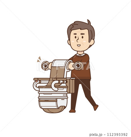 ロボチェアと歩くシニア男性【ロボットとの暮らし・車いす・リラックス・散歩・外出】イラスト