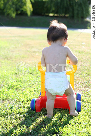 芝生の上を歩く子供のイメージ
