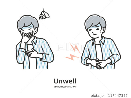 腹痛、嘔吐の症状の若い男性イラスト