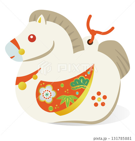 縁起の良い和風の馬の置物 土鈴風のかわいい午年イラスト