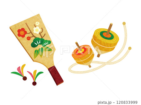 お正月の羽子板とこまのイラスト 縁起物
