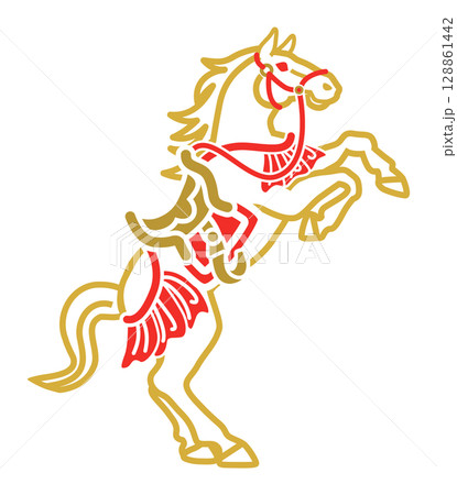 2026 午年 年賀状素材 - 装束をつけて立ち上がる馬