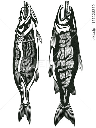 年末年始の贈答品新巻鮭の切り絵イラスト