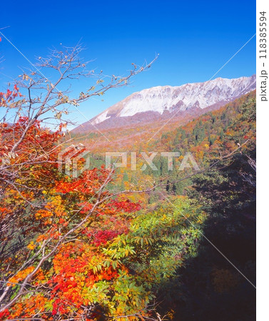 伯耆大山の南壁とその裾野に広がる紅葉(鍵掛峠展望台より展望)「日本百景」「日本百名山
